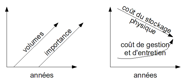 Toutefois, si les coûts du stockage physique des données est en diminution constante, il convient de noter qu'il n'en est pas de même pour le coût de gestion et de maintenance des systèmes, qui croissent ainsi que ceux-ci prennent de l'importance. C'est une réalité qu'il convient de ne pas sous-estimer.