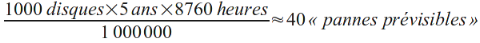 Si nous avons 1000 disques de ce type qui fonctionnent pendant 5 ans :