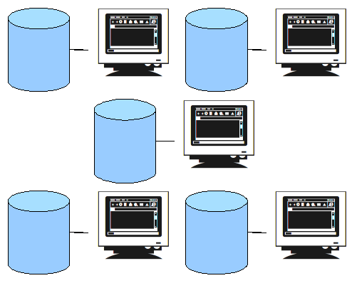 Dans les années 90, le choix s'est orienté vers la distribution de l'information sur les postes de travail personnels, chacun équipé d'unités de stockage particulières. Ceux-ci étaient d'abord autonomes, et le travail collaboratif n'était pas favorisé.