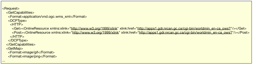 Extrait du fichier XML de réponse à une requête GetCapabilities