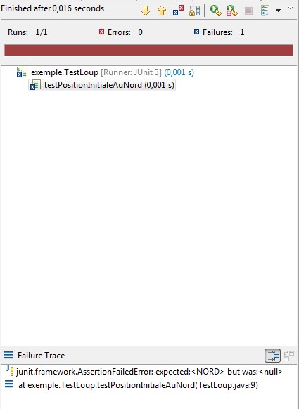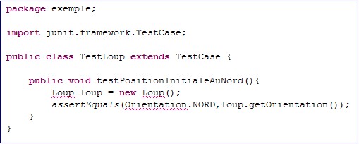Le but est tout d'abord de tester que le loup commence au nord et C'est pourquoi le nom de la méthode de test porte le nom testPositionInitialeAuNord.