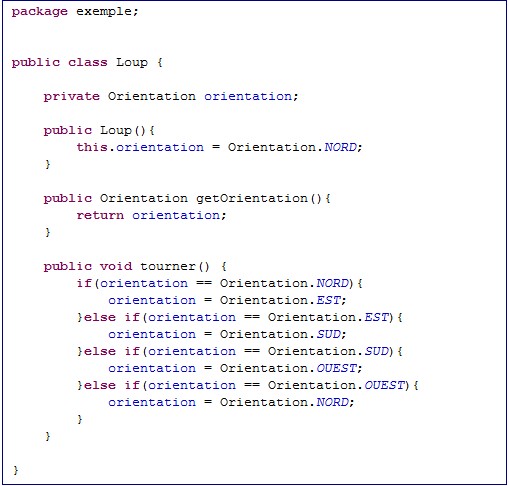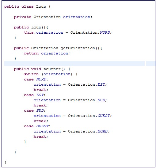 Le loup devant commencer à l'orientation NORD, un champ orientation est créé et il est initialisé lors de la construction de l'objet à la bonne valeur.
