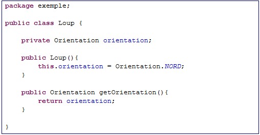 l'objet Loup (qui sera créé par la suite) ainsi que d'introduire la notion d' orientation (qui pourra par exemple être de type énumération).