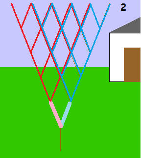 Indication si vous bloquez : cette image vous montre comment vous pouvez procéder en 4 étapes : la branche gauche en rose, la branche droite en bleu clair, le haut d'arbre gauche en rouge, le haut d'arbre droit en bleu.