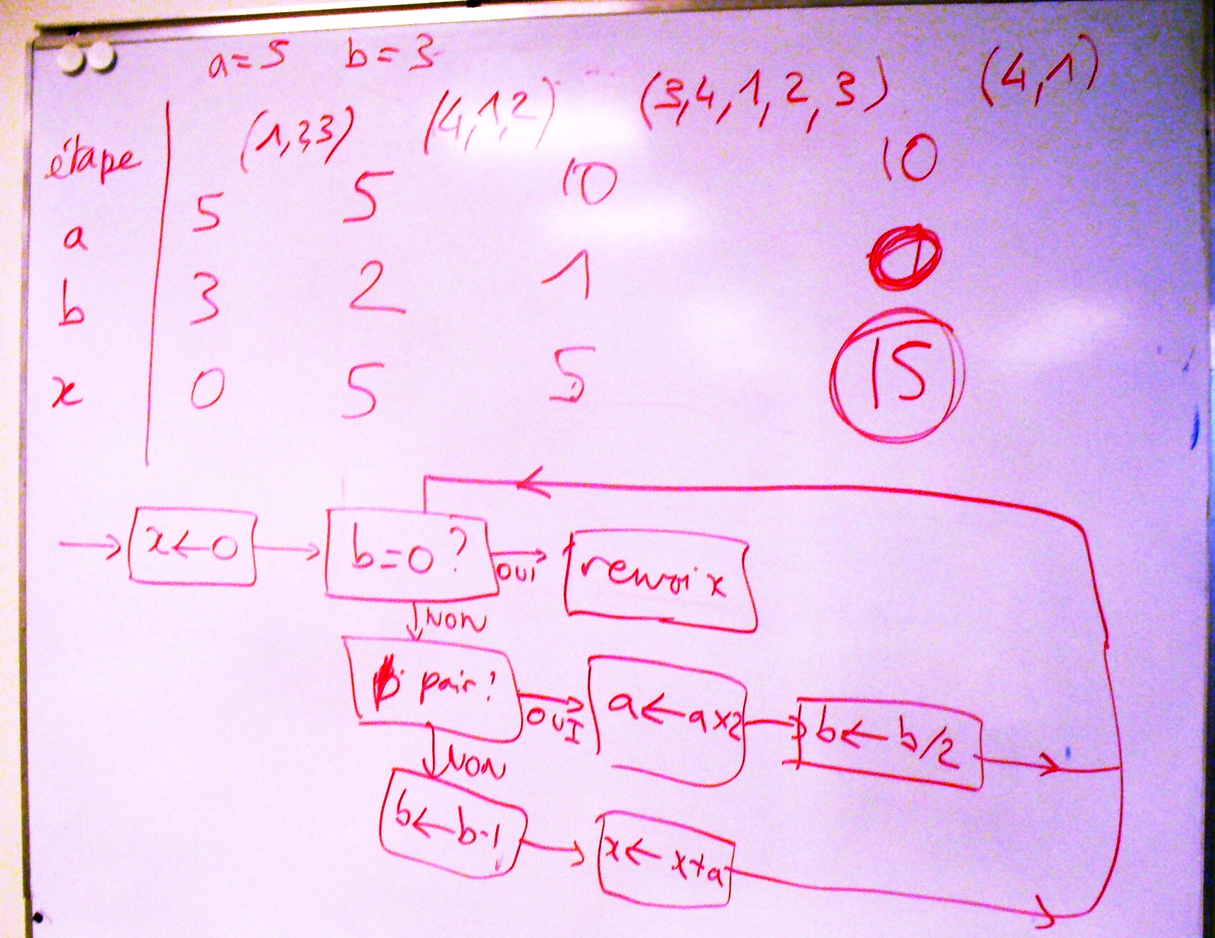 Envoyez-moi vos propositions par mail pour l'exercice ci-dessous. La flèche d'affectation (qui pointe vers la gauche) sera notée de la manière suivante : <-
