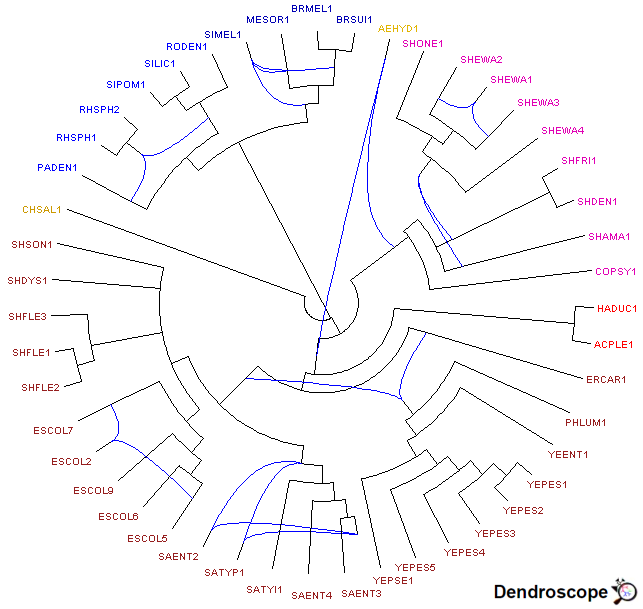 les arbres en les colorant. Le réseau Dendroscope est construit en utilisant