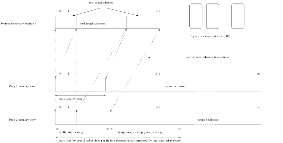 To understand essential notions of C programming (instructions, variables, types, structures, functions, pointers), is is necessary to understand how UNIX (remember that C and UNIX has been invented by the same people at the same time) let the programs see the memory. Each programs will view the memory as an infinite array of binary word (byte) beginning at address 0. The operating systems will later translate the addresses used by the program to real addresses.