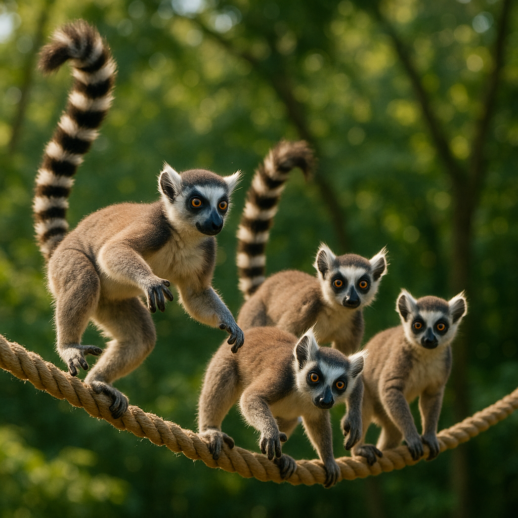 Un groupe de lémuriens cherche à traverser une rivière en passant sur une corde tendue entre les deux rives. La corde a une longueur fixe N > 0, et l’on considère qu’il y a N positions différentes sur la corde, numérotées de 0 à N − 1. La corde peut accueillir au plus N lémuriens en même temps, chacun à une position distincte (il ne peut pas y avoir deux lémuriens à la même position). Un lémurien peut avancer d’une seule position à la fois sur la corde, et seulement à condition qu’il n’y ait pas de lémurien juste devant lui. Tous les lémuriens avancent dans le même sens. Lorsqu’un lémurien entre sur la corde, il occupe la position 0 et, lorsqu’il se trouve à la dernière position et qu’il avance, il sort de la corde et se retrouve sur l’autre rive. Comme il s’agit d’une rivière magique, dès que le lémurien touche la rive après avoir traversé sur la corde, il est téléporté instantanément sur l’autre rive (celle de départ), et peut à nouveau tenter de traverser.