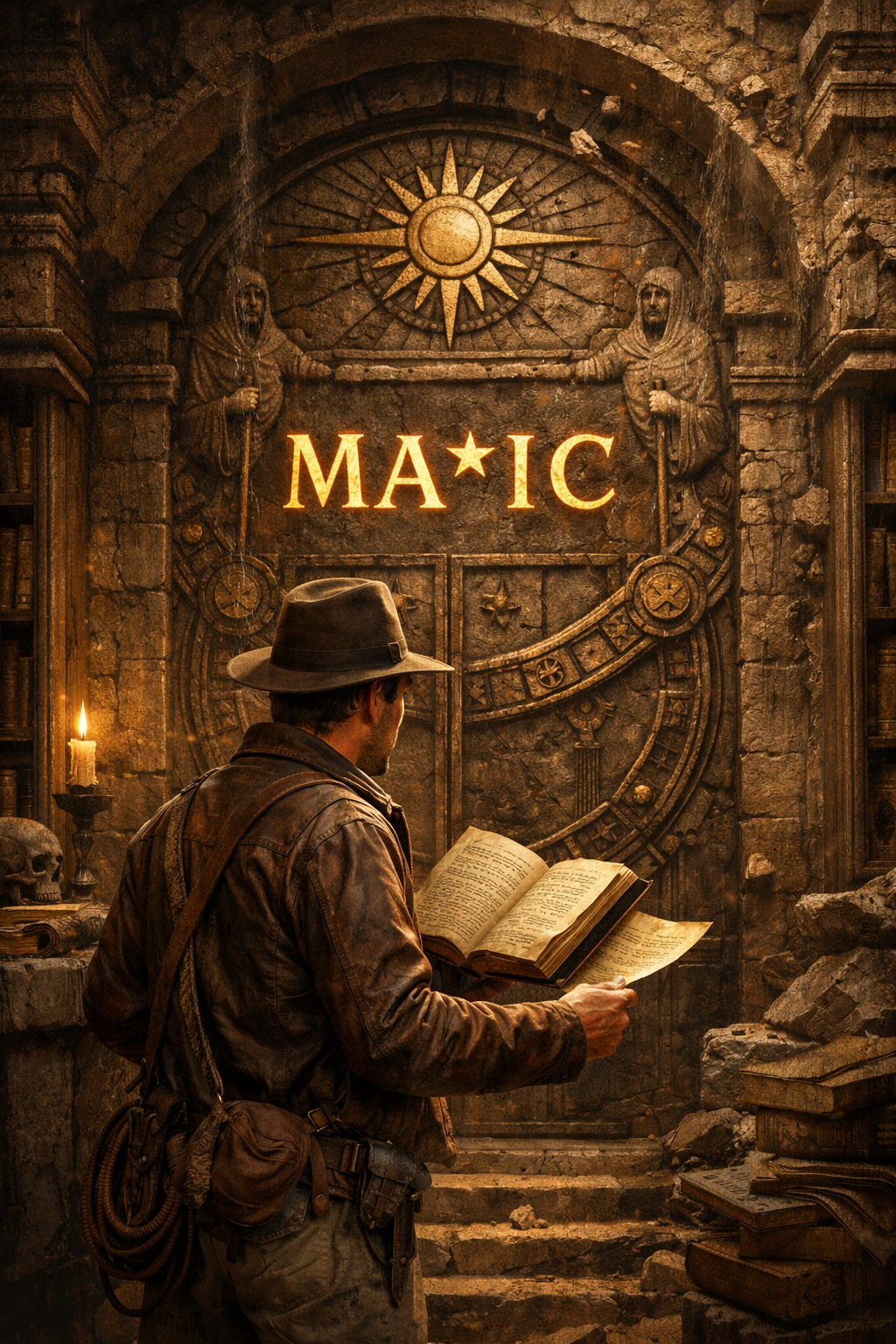 Dans un ancien temple, une porte magique protège l’accès de la bibliothèque oubliée. Pour l’ouvrir, il faut retrouver un mot secret gravé en lettres d’or sur la pierre. Malheureusement, au fil du temps, ces lettres sont devenues invisibles.